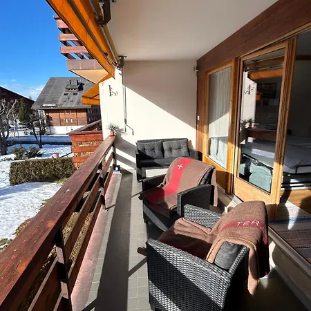 Central Flat In Villars Sur Ollon, Amethyste, For 4, With Two Double Beds, Balcony And 75M To Ski-Train